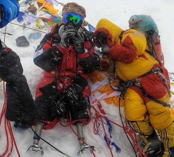 "If a double above-knee amputee can climb Everest, you can climb whatever mountain you face, as long as you are disciplined, work hard and put everything into it,” he said.