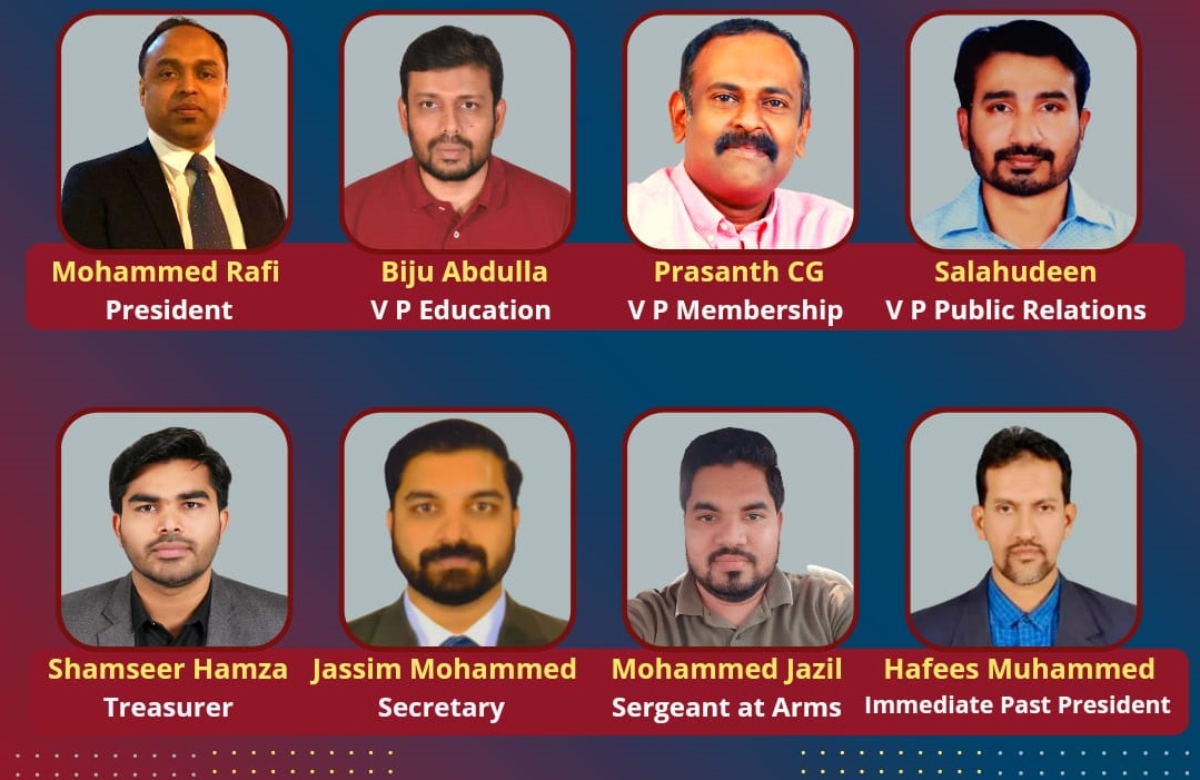 Mohammed Rafi (President), Biju Abdullah, Prasanth, Salahudheen (Vice Presidents), Jassim Muhammad (Secretary), Shamseer Hamza (Treasurer) and Jazil Mohammed (Sergeant at Arms) are the new office bearers of the club.