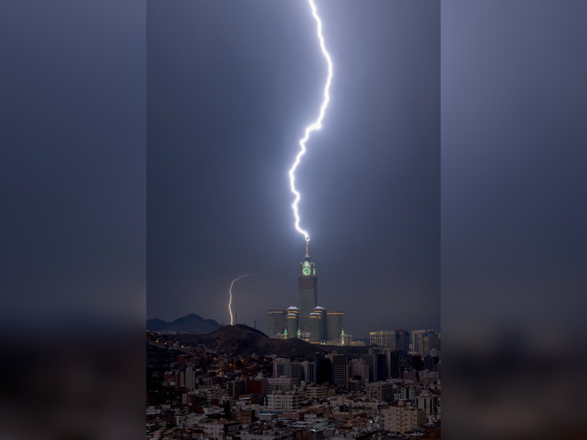 As pilgrims tried to circumambulate the Kaaba, the giant black cube towards which all Muslims pray, a bolt of lightning struck the iconic Fairmont Makkah Clock Royal Tower hotel, illuminating the night sky late Tuesday.
