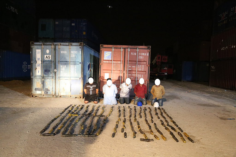 After obtaining an order from the Public Prosecution to search the warehouse and arrest the gang members, officers of the General Directorate of Drug Control raided the warehouse when the gang started cutting the containers to extract the drugs.
