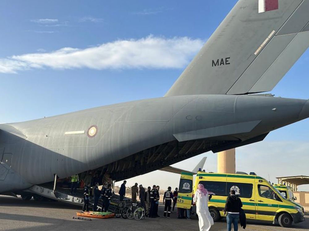 Al-Arish: Two planes belonging to the Qatari Armed Forces arrived in the city of Al-Arish in the Arab Republic of Egypt today, carrying 33 tonnes of aid, including food and medical supplies, provided by the Qatar Fund for Development and the Qatar Red Crescent, in preparation for delivery to Gaza, bringing the total number of aircrafts to 49, with a total of 1,534 tonnes of aid.