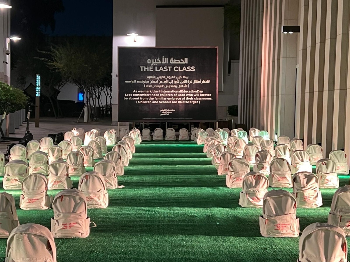 Collaborating with Musheireb, EAA Foundation presents a thought-provoking installation titled "The Last Class." Located at Downtown Musheireb, the installation consists of 110 bags representing each day from the beginning of the war up until International Education Day, symbolizing the urgent need for global attention to education in crisis zones.