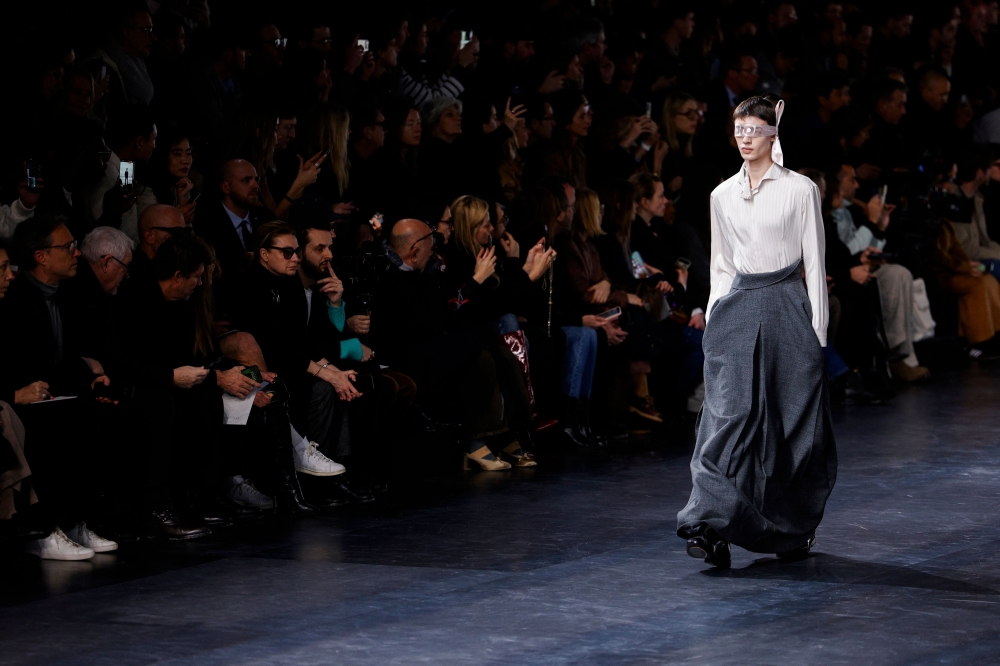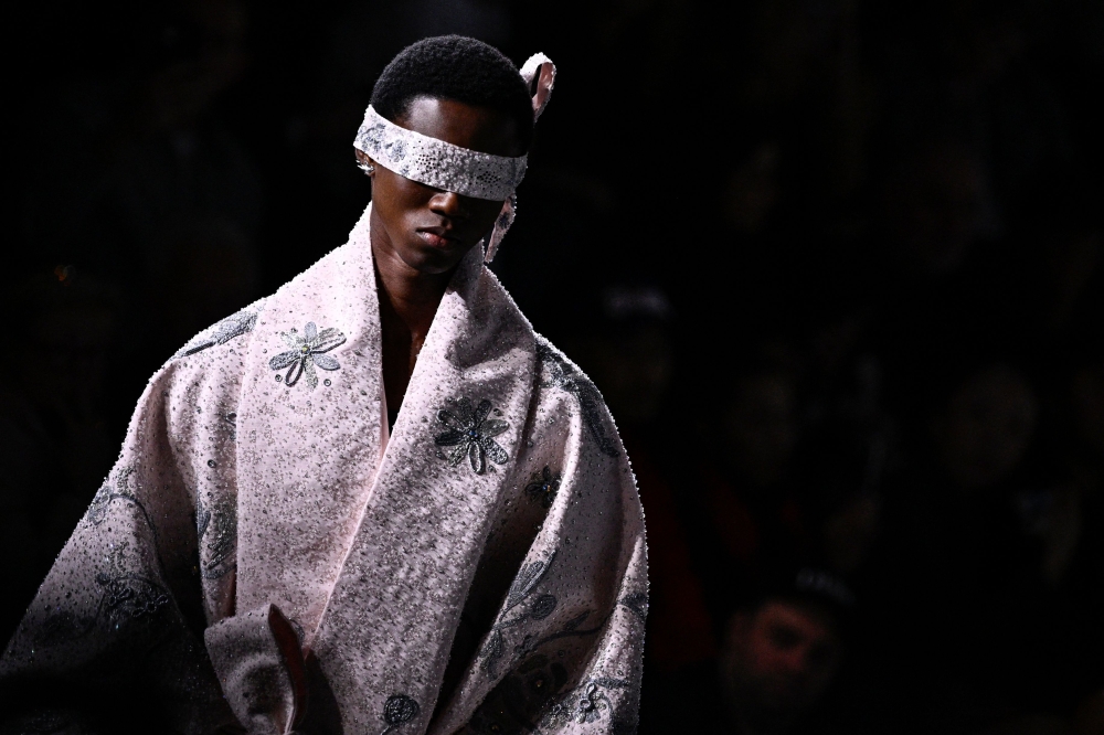 A model presents a creation for the Dior Menswear Ready-to-wear Fall-Winter 2025/2026 collection as part of the Paris Fashion Week, in Paris on January 24, 2025. (Photo by Geoffroy Van Der Hasselt / AFP)