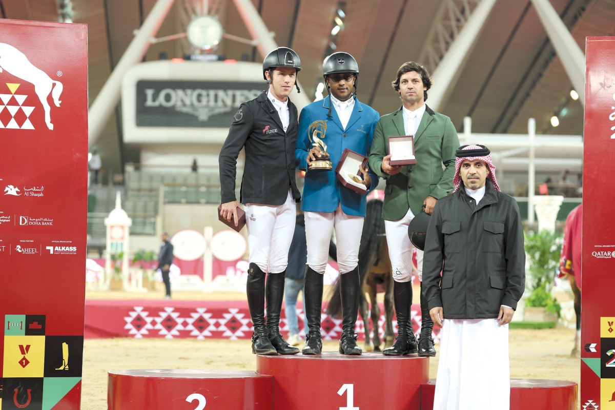 Vice Chairman of the Organising Committee of Doha International Equestrian Tour Bader bin Mohammed Al Darwish honoured the podium winners of CSI5* 1.50m event.