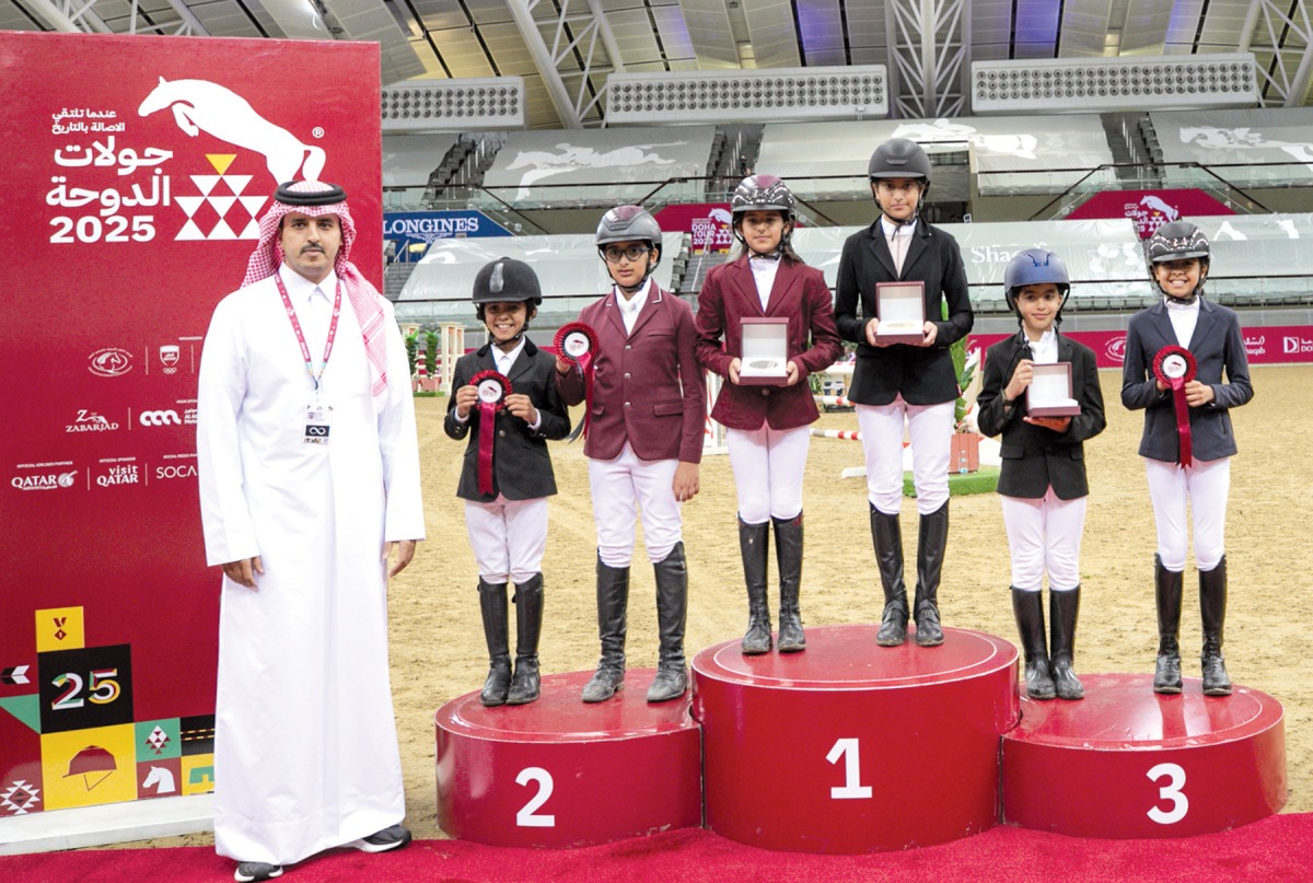 Sports Director of the Doha International Equestrian Tour, Nasser Al Hajri, presented trophies to the top six finishers of the National Competition (0.60m), with Alya Hamad J Al Thani taking first place, followed by Al Najla Abdulla M Al Khulaifi, Mohammed Talal K Talal, Rodha Tamim Al Thani, Khalifa Joaan Al Thani and Salman Faisal Al Marri.