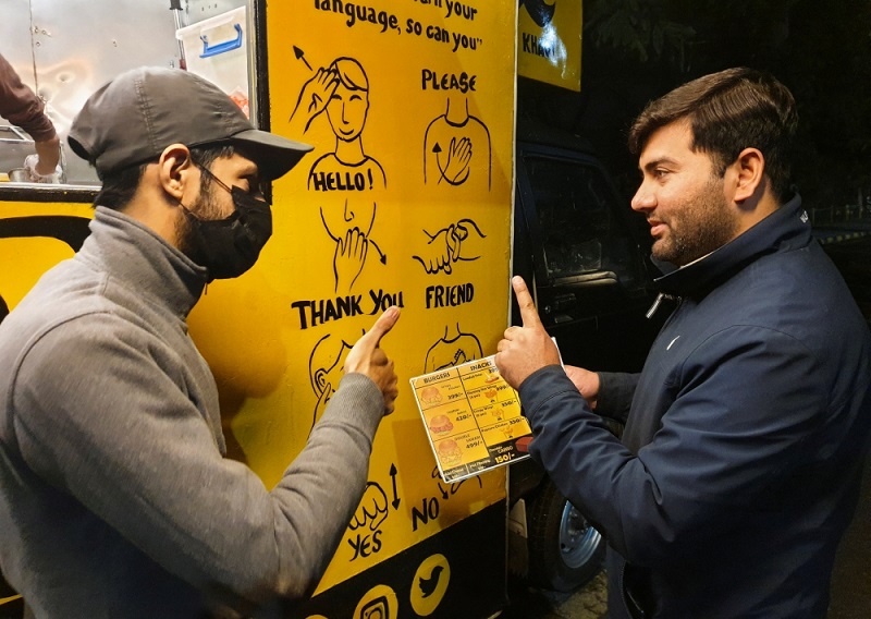 "Normally, whenever we meet anyone who is deaf, we don't know how to communicate with them. They have placed a cue card here in front of their van which is very helpful for everyone when we want to place an order," said student Misal Shahzad.