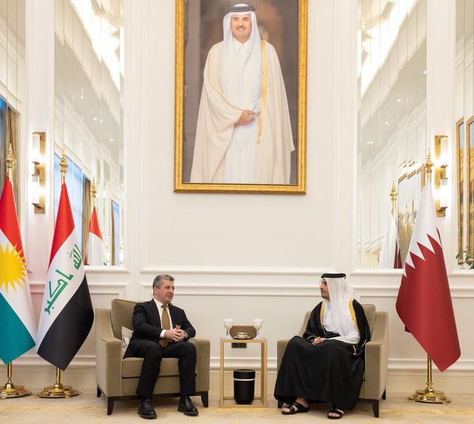 Doha, Qatar: Prime Minister and Minister of Foreign Affairs HE Sheikh Mohammed bin Abdulrahman bin Jassim Al Thani met today with the Prime Minister of the Kurdistan Region of Iraq, HE Masrour Barzani, who is visiting the country.