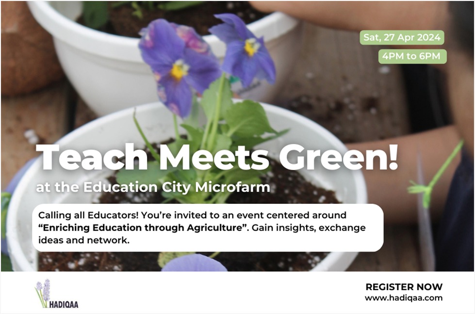 On April 27, educators are invited to the "Enriching Education through Agriculture" event at the Education City Microfarm's Academic Greenhouse. This event is tailored for educators and highlights how garden-based learning experiences can enhance various teaching objectives and curriculum standards.
