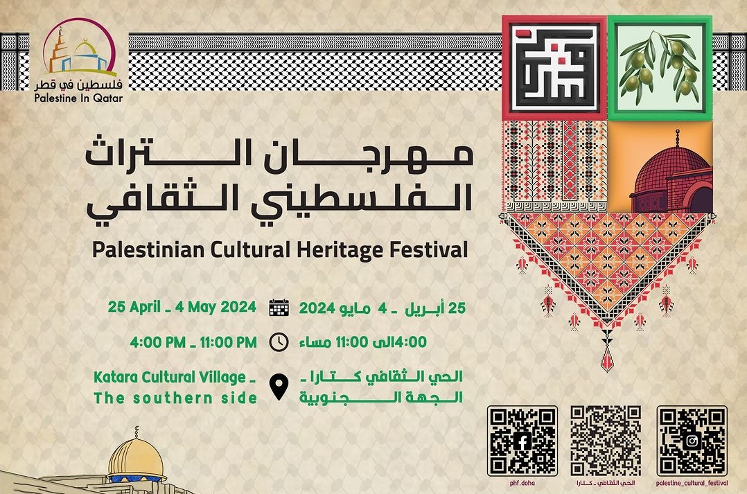 The special edition of the Palestinian Cultural Heritage Festival will be held at Katara Cultural Village's Southern Side from April 24 to May 4, 2024, between 4pm and 11pm.
