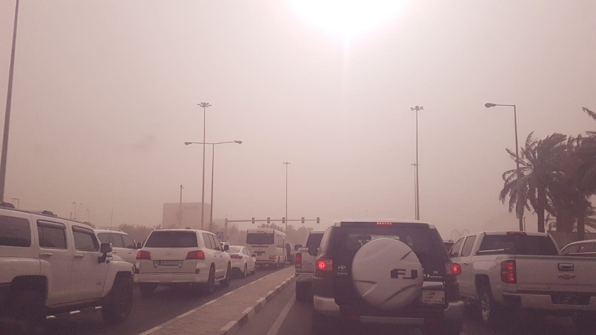 Dust storm causes low horizontal visibility; traffic authorities caution motorists