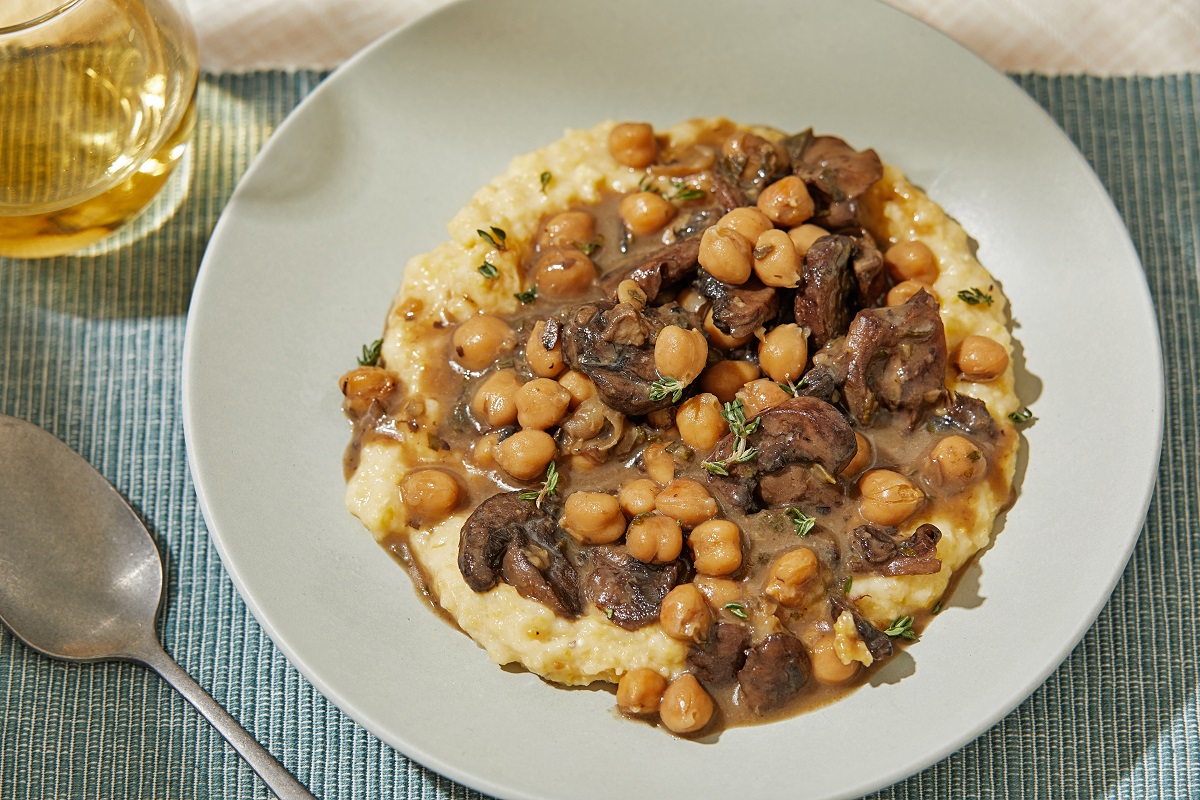 If you're ready for more, try one of the pot-in-pot recipes, such as a mushroom Bourguignon over a potato-cauliflower-mash, Ethiopian lentils over spiced cabbage, or these grits topped with a mushroom-chickpea stew.