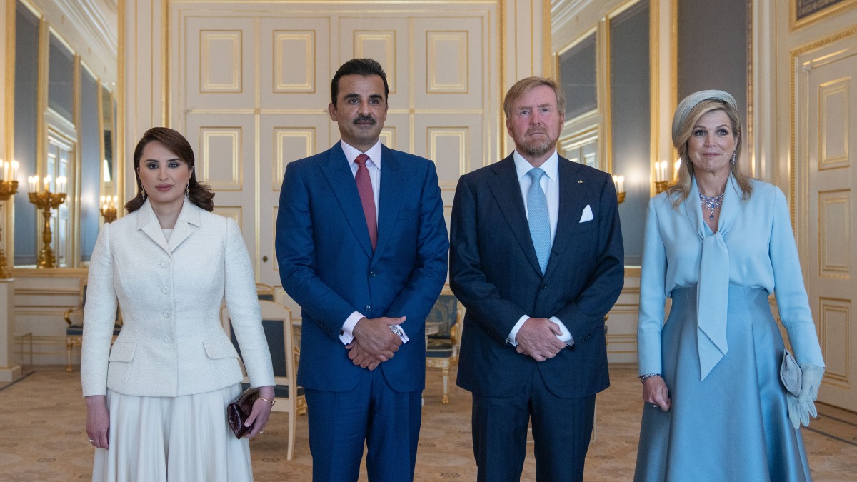 The Hague: The Amir HH Sheikh Tamim bin Hamad Al Thani, and HH Consort of the HH Amir Sheikha Jawaher bint Hamad bin Suhaim Al Thani, attended an official luncheon banquet hosted by HH King Willem-Alexander of the Netherlands and HM Queen Maxima in Their Highnesses' honor at Noordeinde Palace in The Hague today.