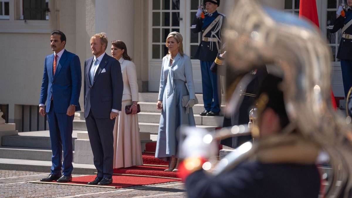 Upon their arrival, HH the Amir Sheikh Tamim bin Hamad Al-Thani and HH Sheikha Jawaher bint Hamad bin Suhaim Al Thani were accorded official reception ceremony. Leading the welcoming party were HM King Willem-Alexander and HM Queen Maxima.