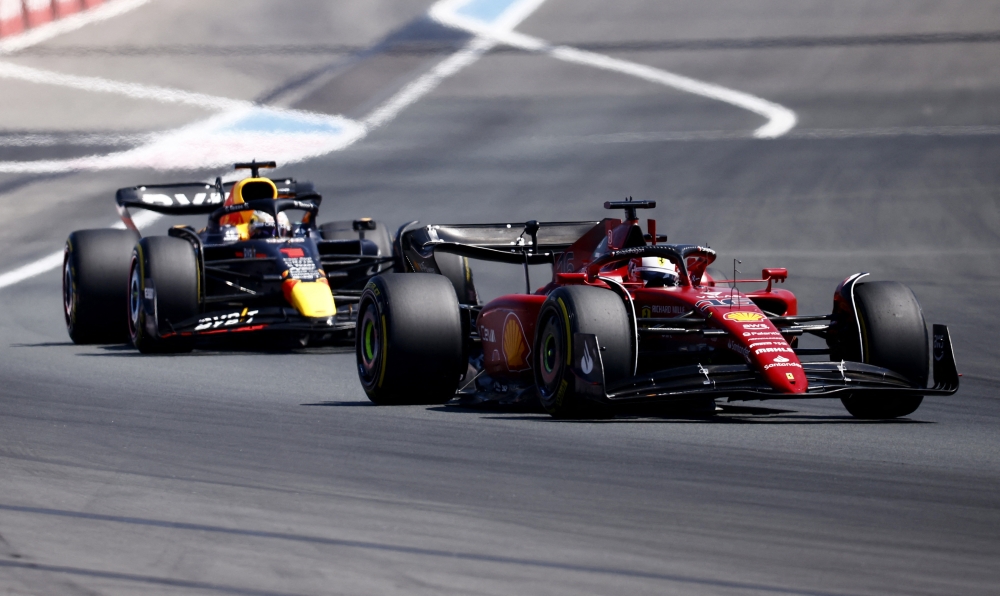 Ferrari's Charles Leclerc and Red Bull's Max Verstappen in action during the French Grand Prix at Circuit Paul Ricard, Le Castellet, France, July 24, 2022. (REUTERS/Sarah Meyssonnier)