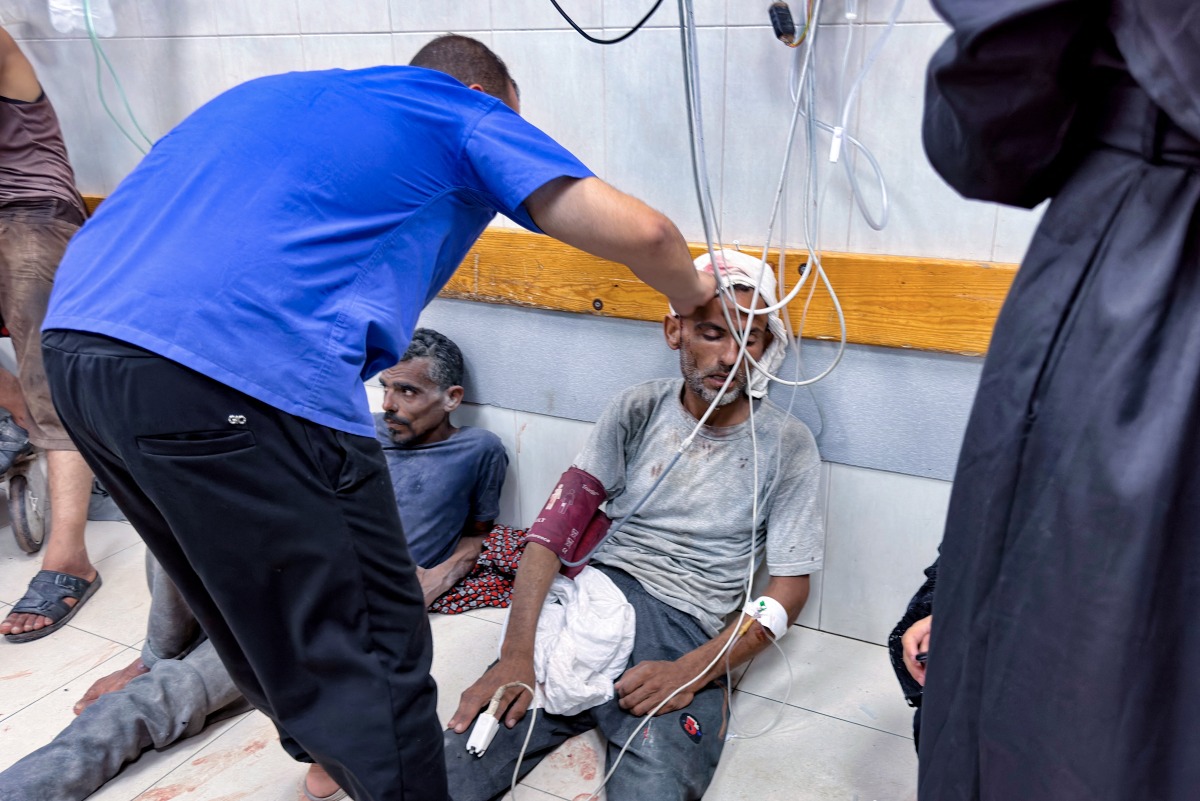 Wounded Palestinians lie on the floor in the emergency ward of the Nasser hospital in Khan Yunis, after sustaining injuries while seeking humanitarian aid near the so-called Morag Corridor between the southern cities of Khan Yunis and Rafah, on July 24, 2025. Photo by AFP.