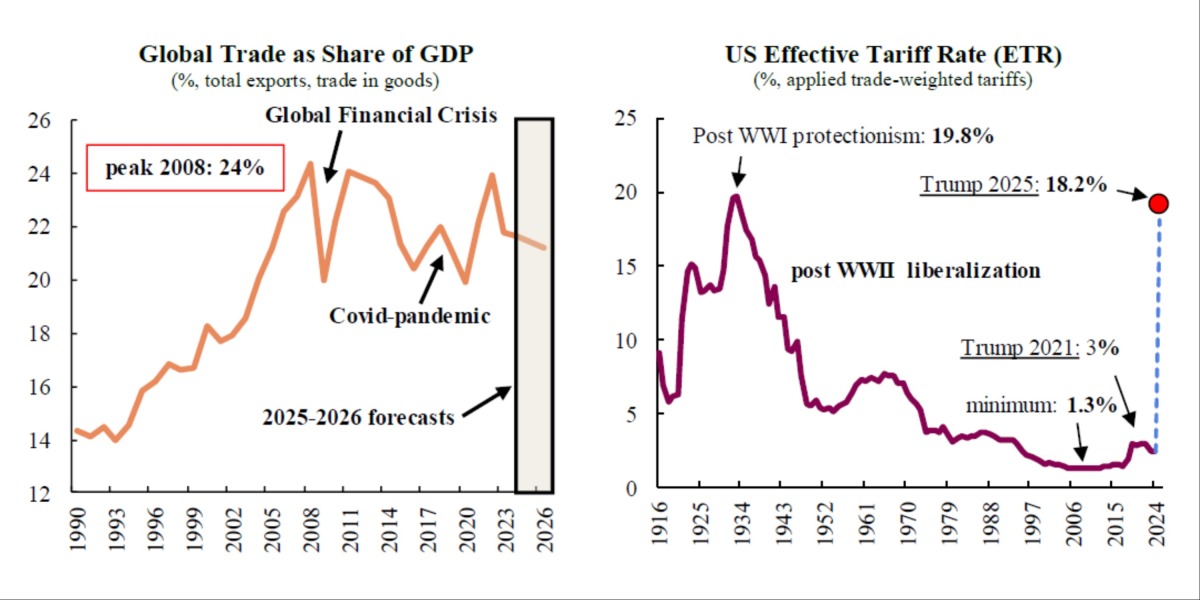 On the production-side, higher tariffs raise input costs and disrupt supply chains, deteriorating competitiveness and lowering investments.