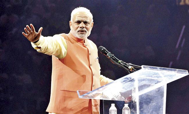New York: Prime Minister Narendra Modi on Thursday received a rousing welcome by the members of the Indian community here. He is in the US to participate in the United Nations summit on development and give a boost to his 'Make in India' and 'Digital India' programmes.
