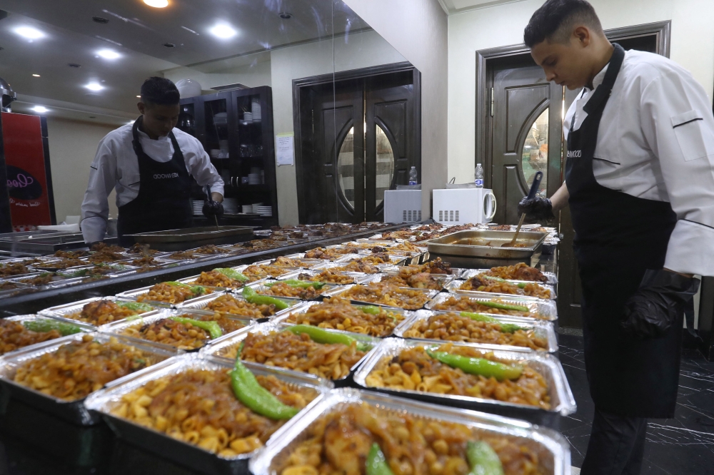 A volunteer kitchen staff prepares meals for people displaced from eastern Libya on September 23, 2023. (Photo by Mahmud Turkia / AFP)