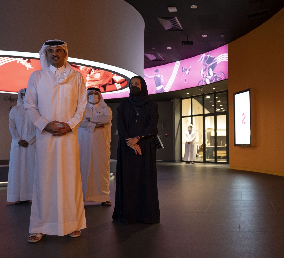 During the visit, His Highness was briefed on the progress of the process of preparing the galleries of the museum, which is scheduled to open in the first quarter of 2022. It aims to highlight the role of sports in cultural and health development, the history and legacy of the Olympic Games and its importance, and the various sports from all over the world through visual screens containing images and information about Arab and international athletes, in addition to highlighting the history of Qatari sports and athletes and Doha as an international sports center.