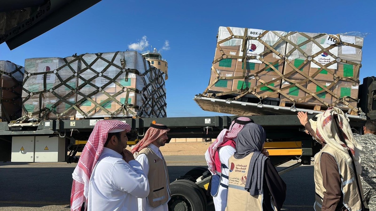 Doha: A Qatari Armed Forces aircraft arrived Sunday in El Arish, the sisterly Arab Republic of Egypt, carrying 14 tons of aid, including foodstuffs, provided by Qatar Fund for Development, Qatar Red Crescent Society, in preparation for delivery to Gaza.