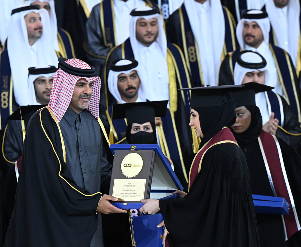 The Prime Minister and Minister of Interior honoured the outstanding graduates and Dr. Khalid Mohamed Al Horr, CCQ’s President, presented the certificates to the graduates. The ceremony was attended by a number of Their Excellencies Sheikhs and ministers, academic and administrative staff, parents of graduates, and a number of CCQ’s elite guests. The Community College of Qatar has been a solid and extended bridge for them to cross over to their ambitions and an incubator for their bright minds, preparing them for the labour market as specialised national cadres.