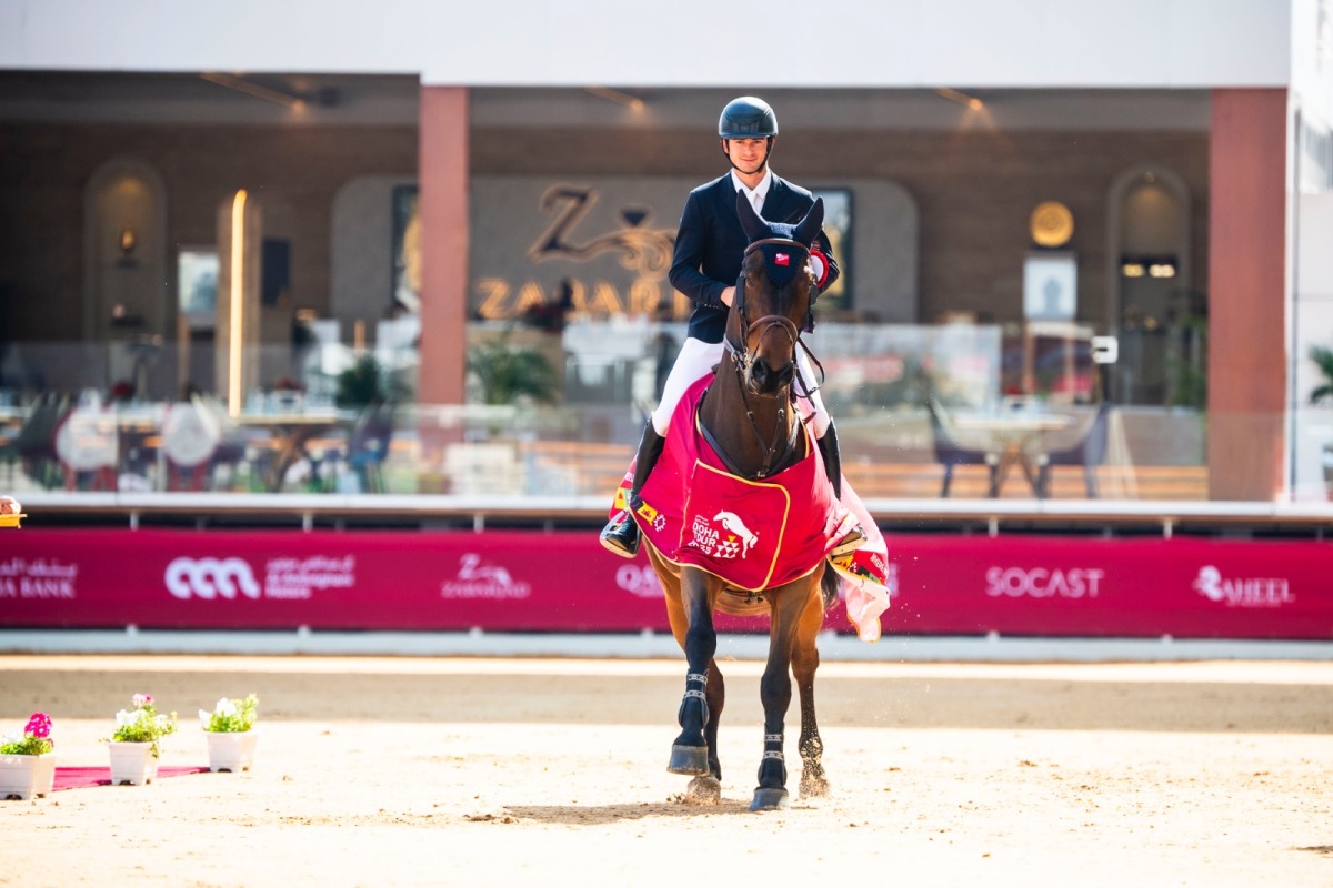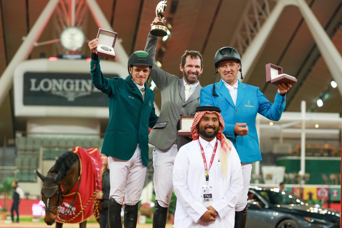 The dazzling CSI5* - Jump Off - 1.50m (LR) - Art. 238.2.2 class, which added to the glorious Longines outdoor arena of Al Shaqab under lights, produced more excitement with nine riders making it to the jump off as German Philipp Weishaupt, riding bay stallion Karaldo, held nerves to produce a flawless finish in 36.73 seconds to claim a grand prize. Saudi Arabia’s Abdullah Alsharbatly continued his good form as he rode bay gelding Fiumicino van de Kalevallei to return in 37.13 seconds to get the second podium place, while Austrian Gerfried Puck on bay gelding Equitron Ornaat V was third finishing 11 hundredths of a second behind the second place winner.