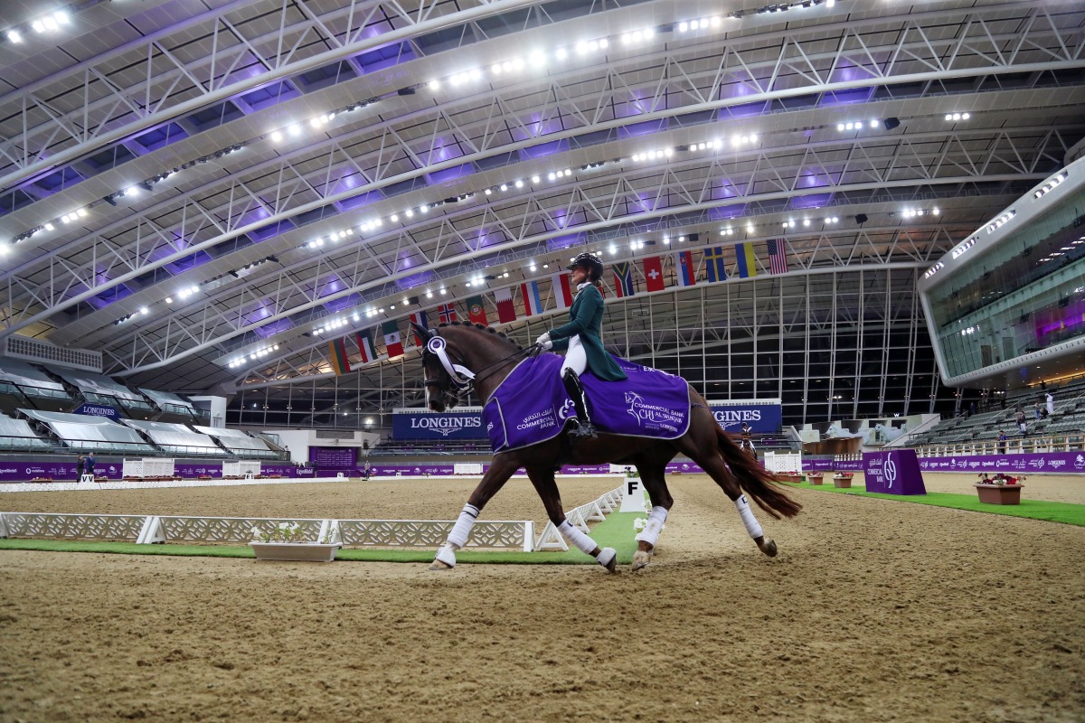 Backed by home fans, Qatar’s Wejdan Majed Al Malki also performed in the event with her 18-year-old purebred bay Spanish stallion Mango Jacaro, earning a score of 61.239 %.