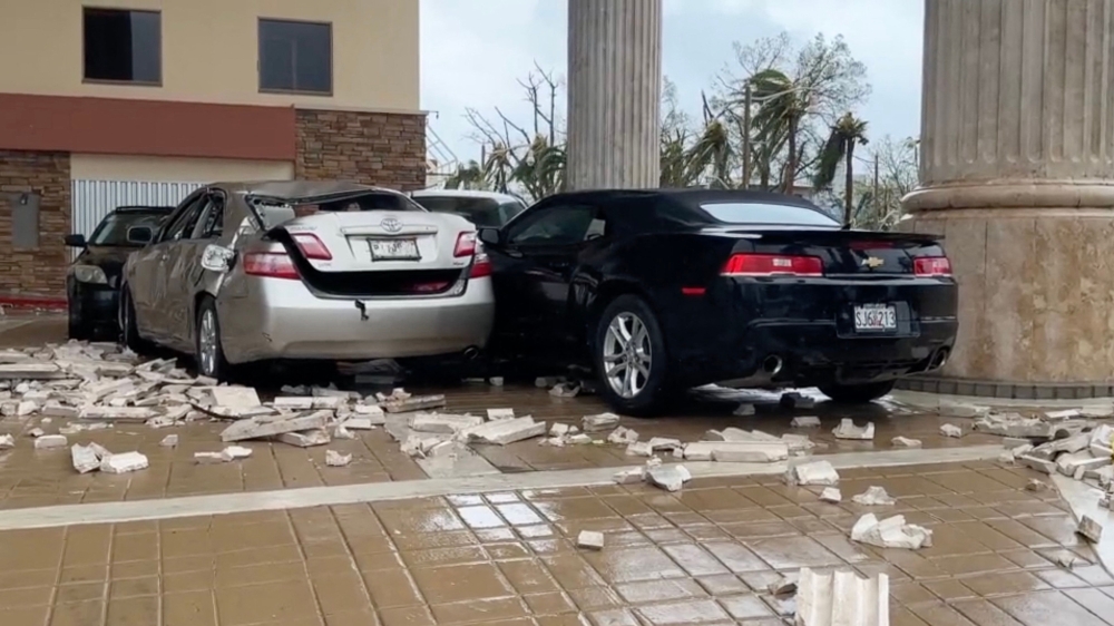 This video capture from James Reynolds' Twitter page @EarthUncutTV shows damaged cars caused by high winds and precipitation a day after Typhoon Mawar passed over Tumon Bay, Guam.