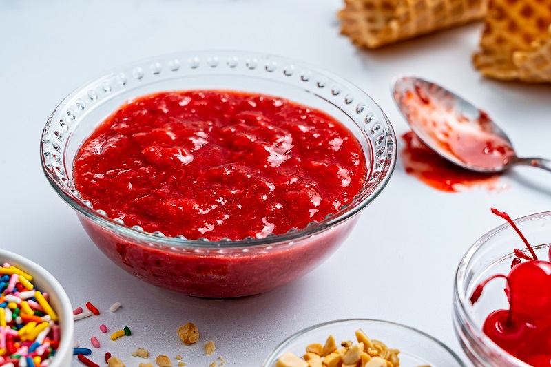 It's not a sundae without a sauce. Like with the ice cream itself, limit yourself to one, maybe two sauces so the flavors don't get too muddied. When building, put some sauce between the scoops of ice cream - and maybe at the bottom of the glass, too - for better distribution.