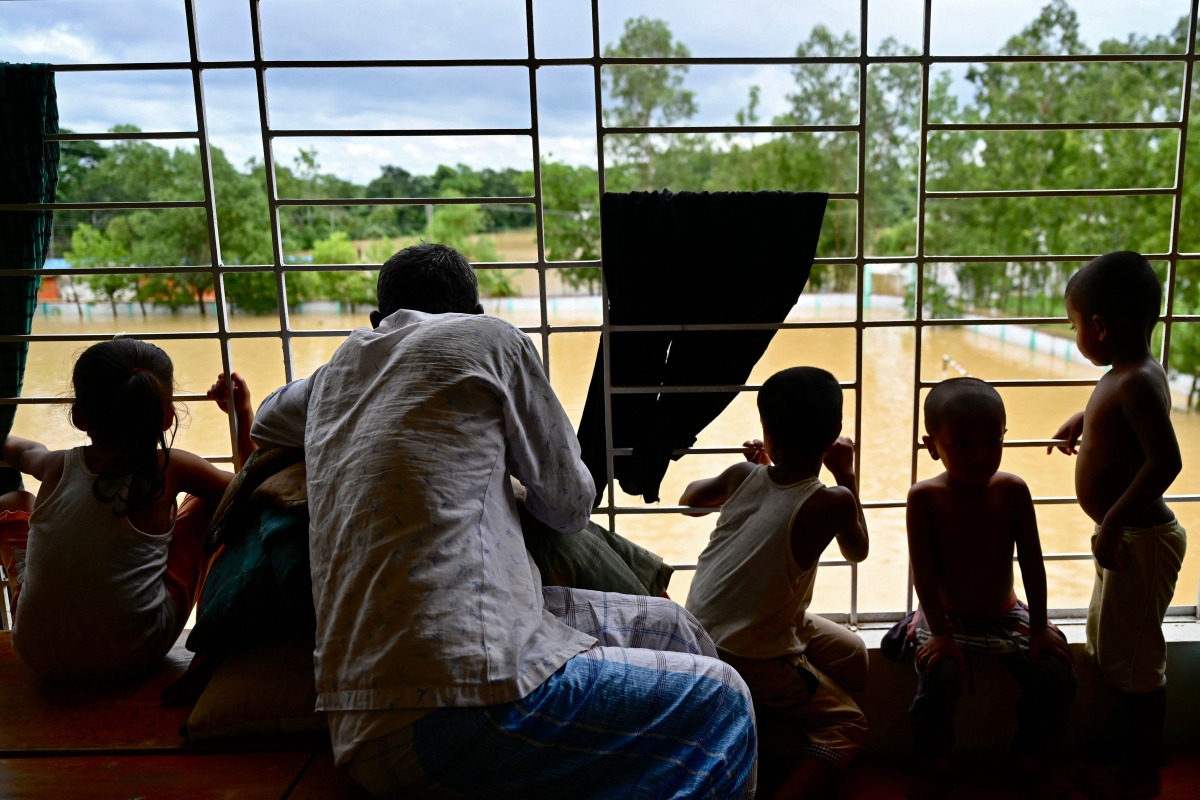 Flood-affected residents look on from a temporary shelter in Feni, in south-eastern Bangladesh, on August 24, 2024. (Photo by Munir Uz Zaman / AFP)