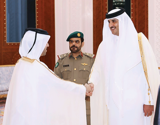 Emir H H Sheikh Tamim bin Hamad Al Thani and Father Emir H H Sheikh Hamad bin Khalifa Al Thani received scores of well -wishers on Eid Al Adha at Al Wajba Palace yesterday morning.