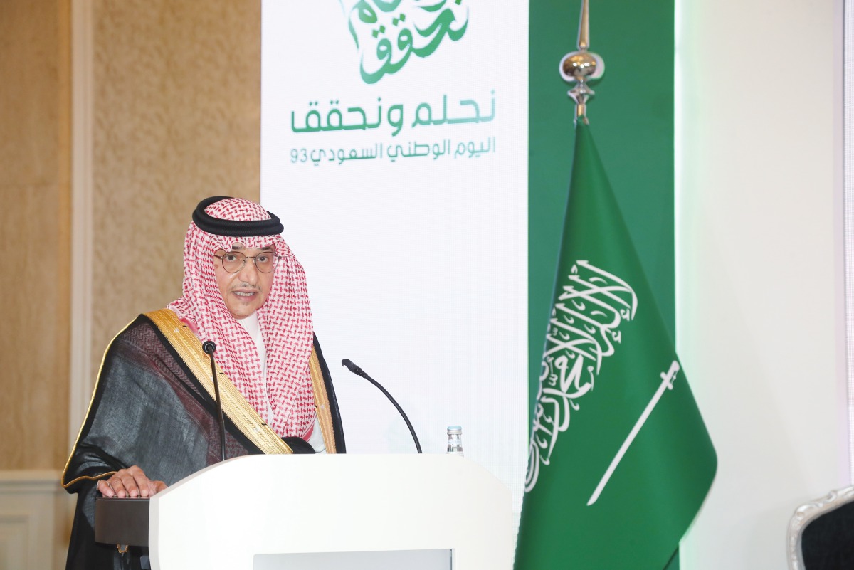 Ambassador of Saudi Arabia to Qatar H H Prince Mansour bin Khalid bin Farhan Al Saud addressing a reception organised by Saudi Embassy to mark 93rd National Day of Saudi Arabia at The Ritz-Carlton, Doha, yesterday.