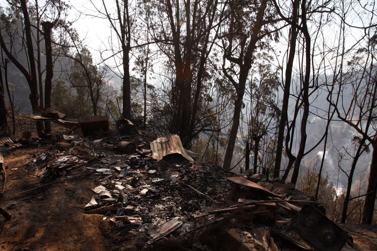 The remains of a house burned by a bushfire on a hill is pictured in Quito on September 25, 2024. Photo by Galo Paguay / AFP