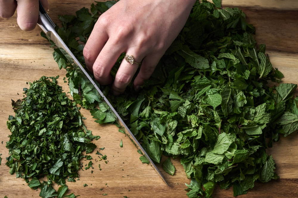 -Leaves from 1 bunch fresh mint (2 ounces), finely chopped