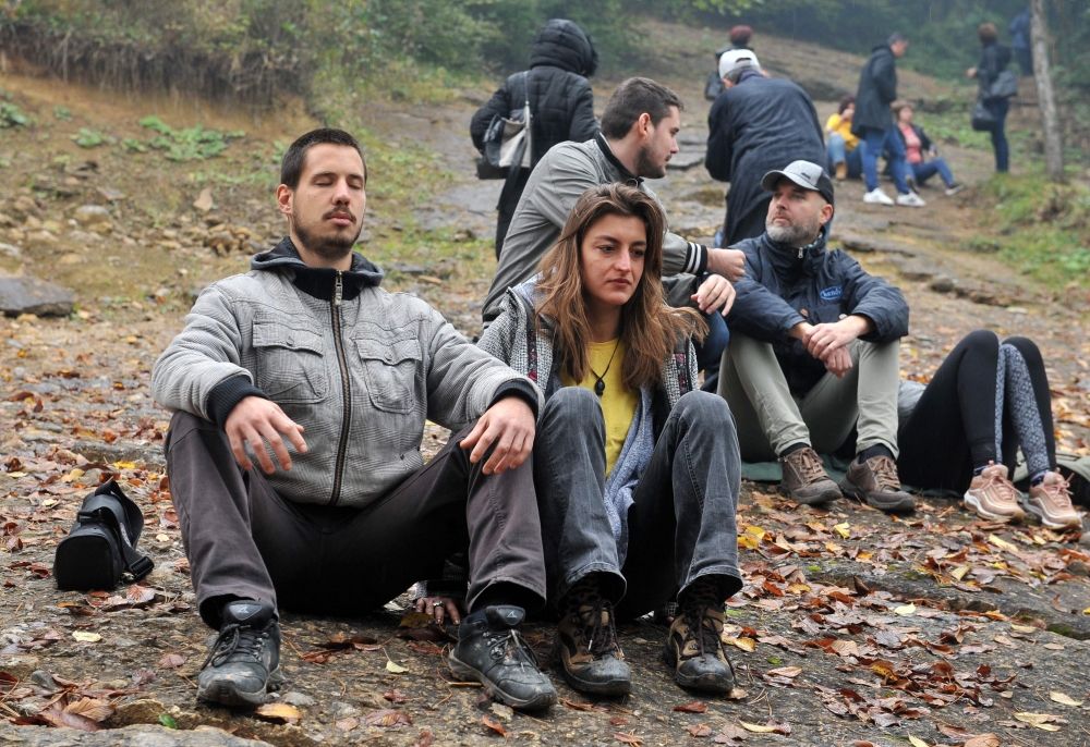 In his tour of the park, Osmanagic takes groups down to the chambers, urging them to hold their hands over a smooth rock and feel the "energy" rising.