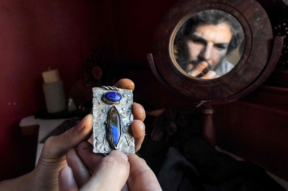 Walid Sellami, an artisan jeweller, displays some of his work at his home in Algiers on December 13, 2023. (Photo by AFP)