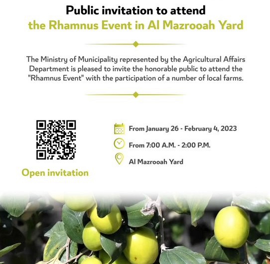 DOHA: The Agricultural Affairs Department at the Ministry of Municipality launched this morning the 'Rhamnus and Honey' festival at the Al Mazrouah Yard, Umm Salal Central Market. The festival will continue until February 4 from 7 am to 2 pm.