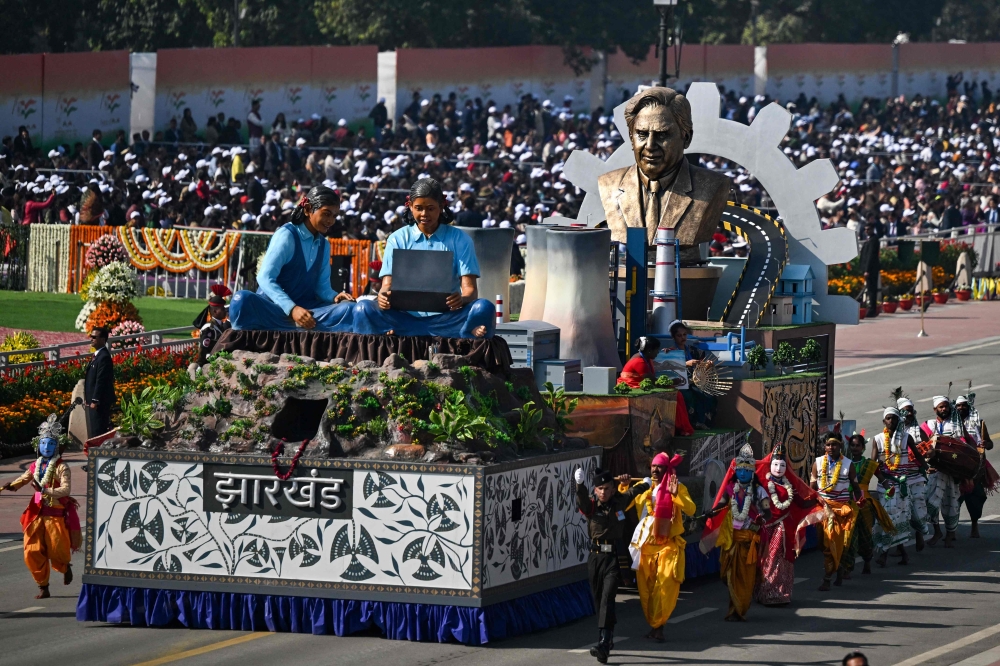 Tableau from India's Jharkhand state take part country's Republic Day parade in New Delhi on January 26, 2025.