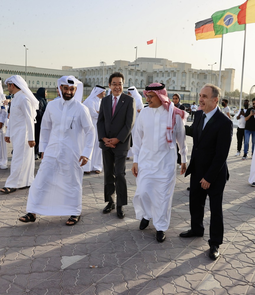 SC Secretary-General Hassan Al Thawadi, CEO of the 2022 FIFA World Cup Qatar Nasser Al Khater, Secretary-General of the Qatar Football Association (QFA) Mansour Al Ansari, Chief of Tournament Experience Khalid Al Mawlawi attended the ceremony along with the Ambassador of the Kingdom of Saudi Arabia H H Prince Mansour bin Khalid bin Abdullah Al Farhan Al Saud, Ambassador of Japan H E Satoshi Maeda, and Ambassador of Uruguay H E Jorge Antonio Sere Sturzenegger.
