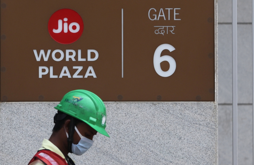 People walk outside a Reliance complex which houses Jio World Plaza mall in Mumbai, India March 10, 2022. Reuters/Francis Mascarenhas