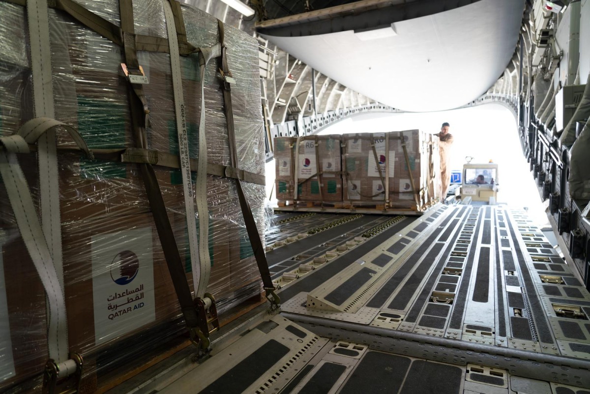Port Sudan: A Qatar Armed Forces aircraft arrived at Port Sudan Airport in the sisterly Republic of Sudan carrying 25 tons of aid, including food supplies and two ambulances, provided by Qatar Fund for Development and Qatar Red Crescent. This brings the total number of planes to 18, with a total of 555 tons of aid.