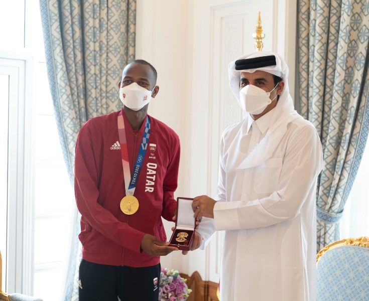 Doha: The Amir HH Sheikh Tamim bin Hamad Al Thani received at the Amiri Diwan today morning, the delegation of Qatar's team crowned with two gold medals in the High Jump and Weightlifting, and a bronze medal in Beach Volleyball at the Summer Olympics - Tokyo 2020.