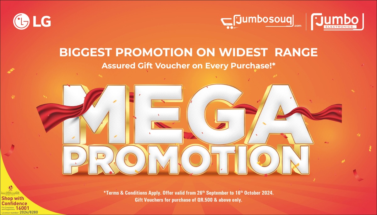 Doha, Qatar: Jumbo Electronics, Qatar’s leading retailer of consumer electronics and home appliances, has announced its highly anticipated Mega Promotion.