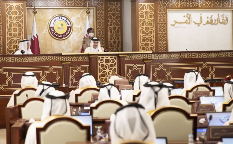 Doha: The Amir HH Sheikh Tamim bin Hamad Al-Thani inaugurated the opening of the first ordinary session of the first legislative term corresponding to the Shura Council's 50th annual session, at the Council's headquarters this morning.