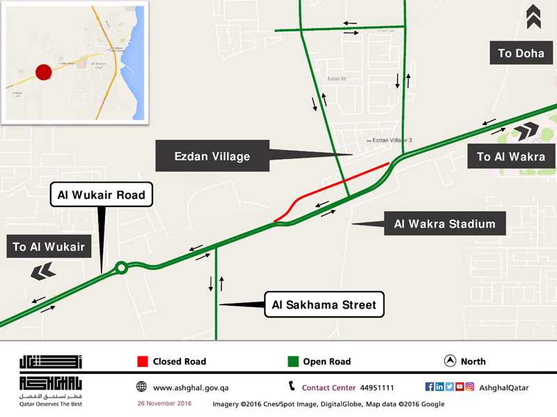 The Public Works Authority ‘Ashghal’ announced that it will improve and move a small section of an existing diversion on Al Wukair Road as shown on the attached map.