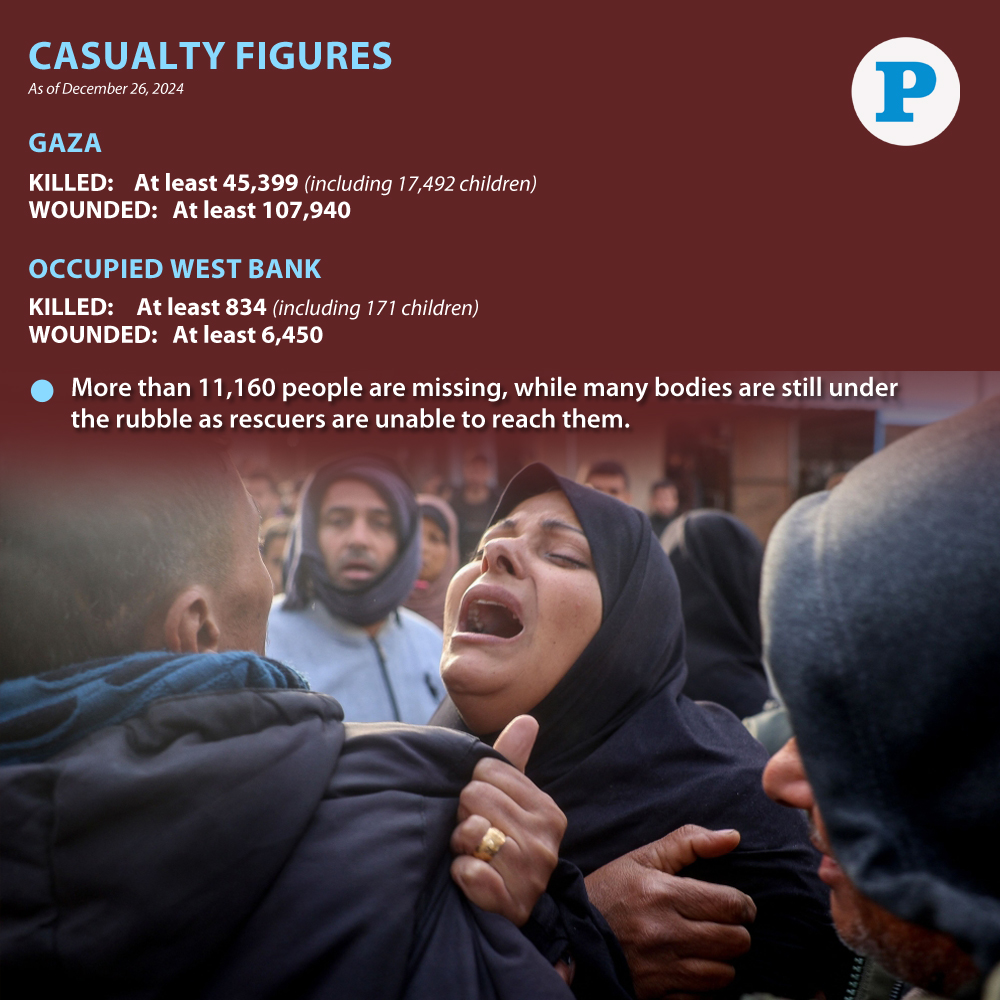 Gaza: The death toll from the Israeli aggression, which has been ongoing on the Gaza Strip since October 7, 2023, has risen to 45,399 martyrs, in addition to 107,940 wounded.