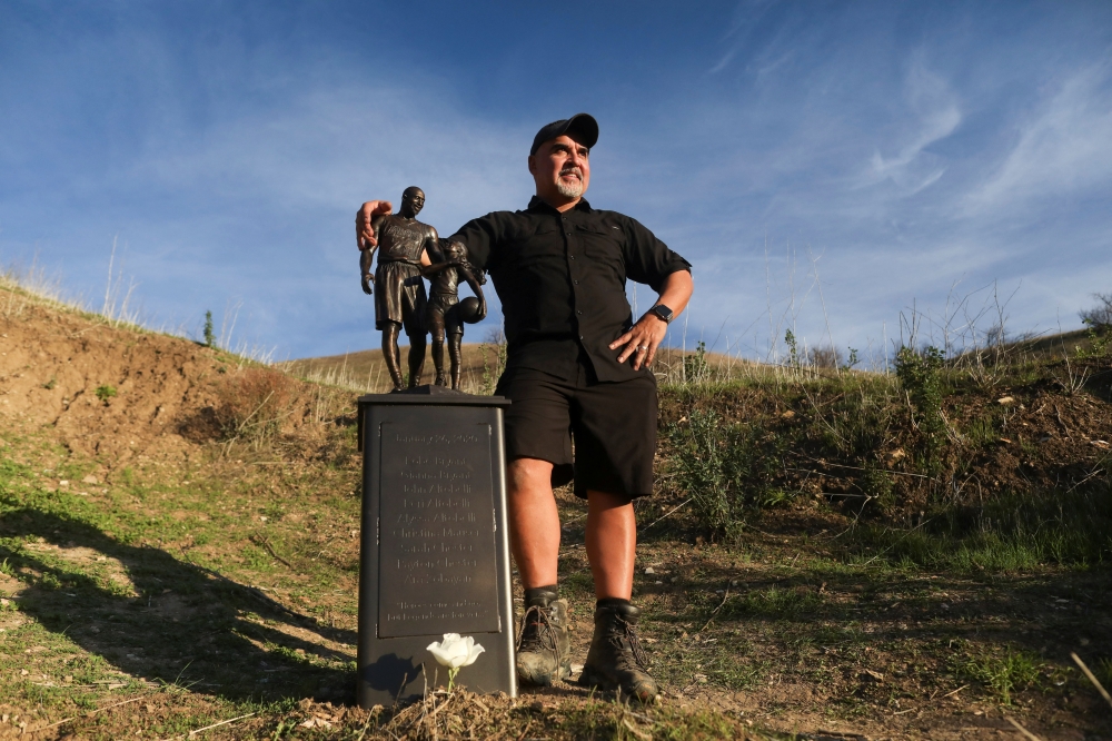 A temporary statue of Kobe and Gigi Bryant at the helicopter crash site two years ago today in Calabasas, California, U.S., January 26, 2022. Reuters/David Swanson