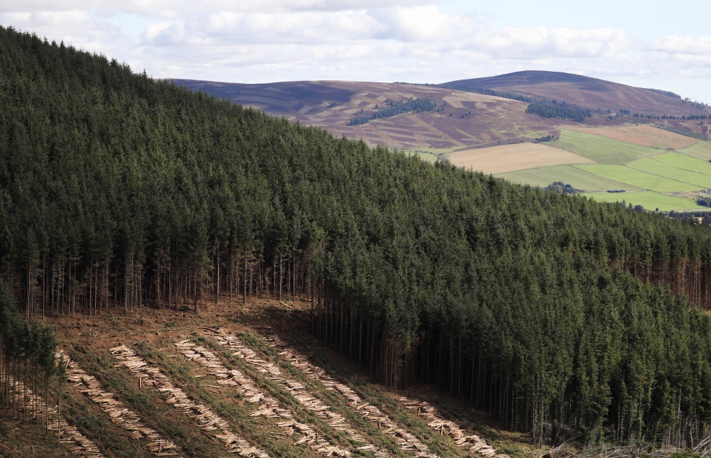 A timber plantation is seen on the Kildrummy Estate, Scotland, Britain, September 7, 2021. Reuters/Russell Cheyne