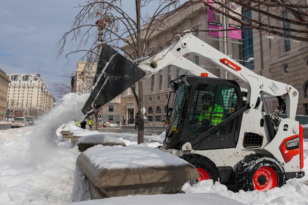 Workers clear snow on January 26, 2026 in Washington, DC. Heather Diehl/Getty Images/AFP