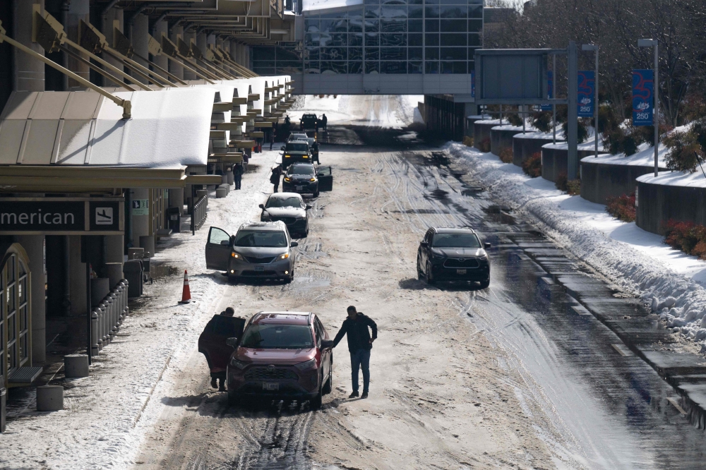 Cars in a pickup area as flights get delayed and cancelled at Ronald Reagan Washington National Airport, January 26, 2026. (Photo by Saul Loeb / AFP)